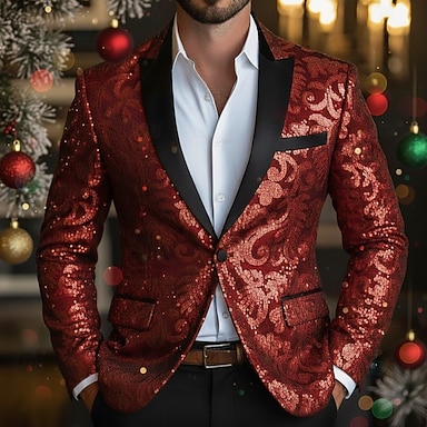 Herre Blazer jakke Lukkekrage Jul Mote Fest Blomstret Blad Blazer Blå Rød Lilla Skreddersydd Enkelt Brystet Enn-knapp