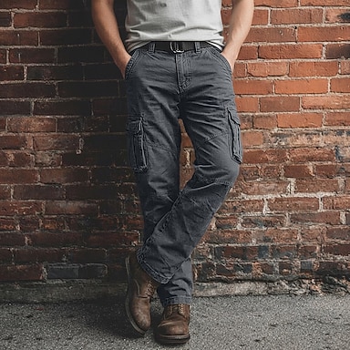 Herre Cargo bukser Turbukser Multi lomme Rett ben عادي Anvendelig Fukttransport Full lengde Daglig utendørs Camping & Vandring Ferie Mote Blå Svart Uelastisk
