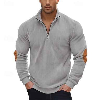 Herre Genser Kvart glidelås genser Aprikos Svart Militærgrønn Navyblå Grå Halv glidelås Fargeblokk Lapper Riflet Med Tekstur Sport & Utendørs Daglig Ferie Polyester Kordfløyel Gatemote Grunnleggende