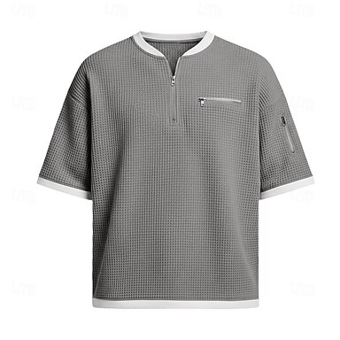 Herre Vaffel poloskjorter Poloskjorter Avslappet Daglig Quarter Zip Kortermet Mote Grunnleggende عادي Glidelås Lettvekt Sommer Normal Lilla Svart Burgunder Navyblå Himmelblå Kakifarget Vaffel