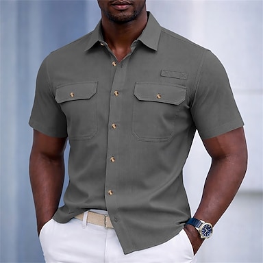 Herre Skjorte Uformell skjorte Skjorte med knapper Cargo skjorte Svart Hvit Navyblå Blå Kakifarget Kortermet عادي Skjortekrage Avslappet Daglig Lomme foran Klær Elegant Mote Daglig Fritid