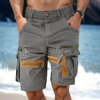 Herre Cargoshorts Shorts Casual shorts Lomme med glidelås Multi lomme Rett ben عادي Komfort Knelengde Avslappet Daglig Ferie Mote Gatemote Svart Grønn Mikroelastisk