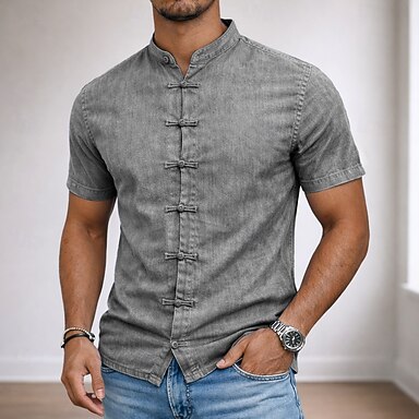 Herre Skjorte Ribbestrikket Uformell skjorte Skjorte med knapper Blå Svart Lilla Kakifarget Grå Kortermet عادي bestefars krage Avslappet Daglig Lapper Klær Elegant Mote Moderne Fritid