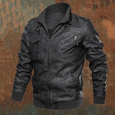 Herre Lærjakker Biker jakke Motorsykkeljakke Feriereise Daglig Vindtett Hold Varm Lomme Høst Vinter عادي Mote Klassisk Høy krage Normal Rød Grå Jakker