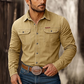 Herre Western skjorte Cargo skjorte Cowboyskjorte Kakifarget Militærgrønn Langermet Helfarge عادي Aftæpning Sport & Utendørs Avslappet Lomme Klær Årgang Klassisk Fritid Taktisk