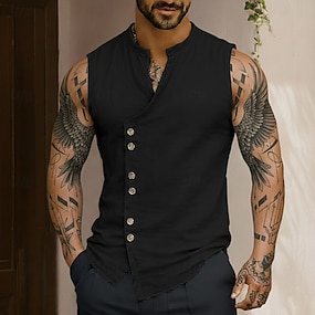 Herre Skjorte Linskjorte Sommerskjorte Strandskjorte Vintage skjorte Ermeløs skjorte عادي Avslappet Daglig Svart Hvit Himmelblå Kakifarget Ermeløs Kinesisk Krave Sommer Vår Klær Knapper