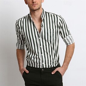 Herre Skjorte Sommerskjorte Uformell skjorte Strandskjorte Skjorte med knapper Svart Gul Rød Kakifarget Mørkeblå Langermet Stribe Knaphul Feriereise Hawaiisk Lomme Klær Polyester Mote Fritid Bekvem