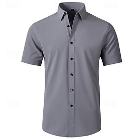 Herre Skjorte Sommerskjorte Uformell skjorte Skjorte med knapper Hvit Rosa Vin Navyblå Kamel Kortermet عادي Knaphul Feriereise Daglig Lomme foran Klær Polyester Mote Fritid Bekvem
