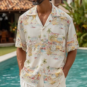 Herre linskjorte Sommerskjorte Strandskjorte Designerskjorte Grafisk utendørs Gate Hvit Blå Grønn Kakifarget Langermet Aftæpning Sommer Vår Klær Trykt mønster