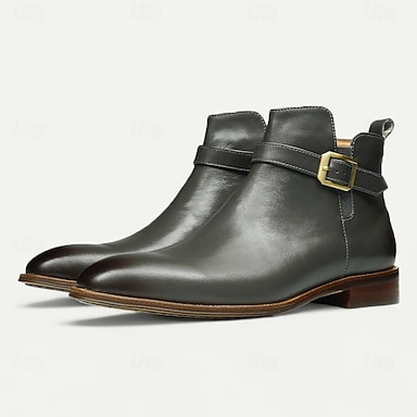Herre ankelstøvletter med hvit spenne, moderne, stilige støvletter med glidelås på siden og stroppdetaljer til bryllup, fester og trendy fritidsklær