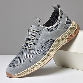 pustende mesh joggesko for menn – lette uformelle snøresko med semsket skinn for sommervandring, utendørs og reiser