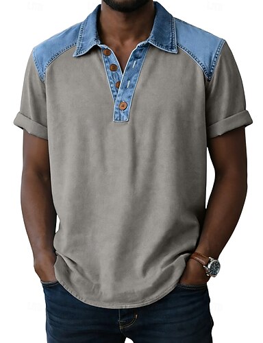 Herre Poloskjorter Dongeriskjorte Avslappet Arbeid Knaphul Kortermet Grunnleggende Moderne Fargeblokk Lapper Knapper Vår sommer Blå Svart Hvit Navyblå Brun Grønn Poloskjorter