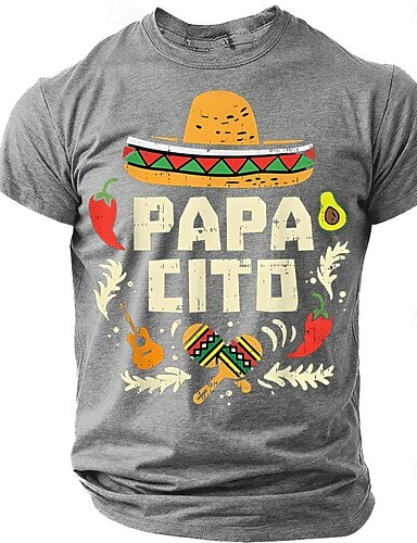 Herre papacito meksikansk sombrero cinco de mayo fiesta morsom farsdags-T-skjorte grafisk avslappet korte ermer olivengrønn chilipepper avokado maracas gave designerklær s m l xl xxl xxl