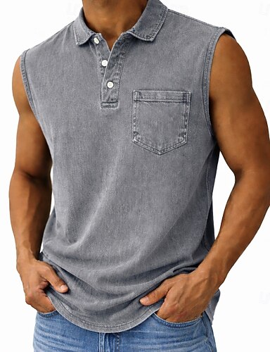 Herre Poloskjorter 100% bomullssyre-vaskeskjorte Avslappet Ferie Opprett krage Ermeløs Mote Grunnleggende عادي Årgang Nedtrykt Vår sommer Blå Rosa Lilla Grå Poloskjorter
