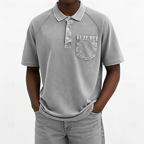 Herre Poloskjorter Sports poloskjorter Avslappet Sport Knaphul Kortermet Mote Grunnleggende عادي Fargeblokk Årgang Sommer Vår Vår sommer Normal Lysegrønn Grå Poloskjorter