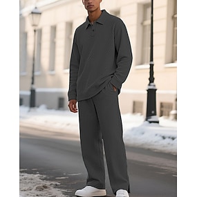Herre Golf skjorte Golf poloskjorter Arbeid Avslappet Knaphul Langermet Grunnleggende Moderne عادي Jacquard 2 deler Vår Høst Normal Svart Kakifarget Lyseblå Grå Golf skjorte