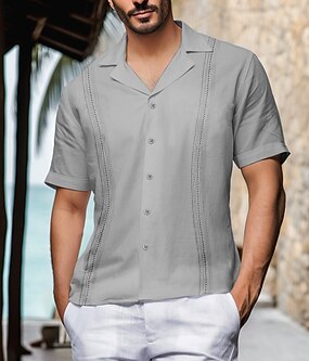 Herre Skjorte Guayabera skjorte Sommerskjorte Strandskjorte عادي Feriereise Avslappet Svart Hvit Grå Lyseblå Kortermet Krage Sommer Vår Klær