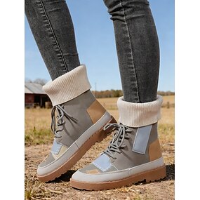 Damesko med lappeteppe og snøring i vinterstil med varmt fôr – avslappede utendørssko med sklisikker såle, ideelle for daglig bruk, fotturer, reiser og kaldt vær