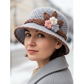 Heklet blomsterlue til dame, tilgjengelig i flere farger, strikket materiale, perfekt for fritidsklær på våren og sommeren