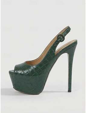 Svarte damesandaler med krokodillepreget platå og høye hæler, slingback-stropp, stilettohæler med åpen tå for natteliv, fest og klubbantrekk &kveldsantrekk