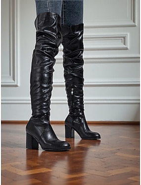 kvinners over-kne-støvletter i kunstskinn – tykke hæl-lårhøye støvletter for moteriktig høst- og vintertøy