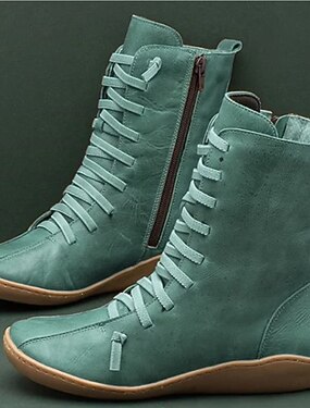 Flate damestøvletter med snøring og glidelås på siden – myke sko i kunstskinn til midt på leggen for turgåing, reiser og høstantrekk