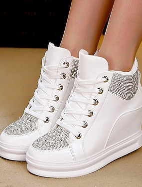hvite rhinestone wedge joggesko for kvinner – høykvalitets plattformsko i imitert skinn for casual-, fest- og streetwear-mote