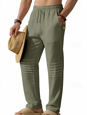 Herre Linbukser Bukser Sommerbukser Strandbukser Snorer Elastisk midje Rett ben عادي Komfort Pustende Avslappet Daglig Ferie Mote Klassisk Stil Lys kaki Svart