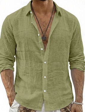 Herre Skjorte Linskjorte Sommerskjorte Skjorte med knapper عادي Avslappet Daglig Svart Hvit Rosa Grønn Langermet Krage Vår sommer Klær