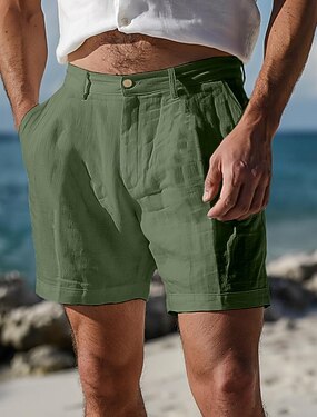 Herre Shorts Lin Shorts Sommershorts Strandshorts Casual shorts Snorer Elastisk midje Helfarge Komfort Pustende Knelengde Daglig utendørs Gateklær Mote Klassisk Stil Blå Grønn Mikroelastisk