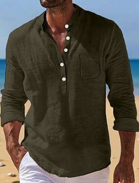 Herre Skjorte Linskjorte Skjorte med bandkrage Popover skjorte Sommerskjorte Strand Klær عادي Feriereise Ferie Svart Hvit Gul Vin Langermet Henley Sommer Vår Klær