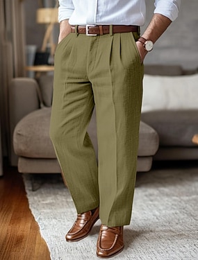 Herre Linbukser Bukser Sommerbukser Plisserte bukser Dress Slacks Lomme foran Rett ben عادي Komfort Pustende Full lengde Avslappet Daglig Ferie Mote Grunnleggende Svart Hvit