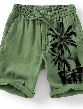 coconut tree menns bomullslinshorts sommer hawaiiansk shorts strandshorts med snøring elastisk midje pustende myk 20% linshorts uformell hverdagsferie streetwear