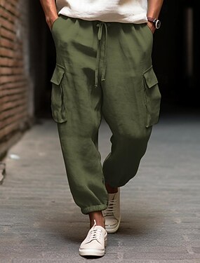 Herre Linbukser Bukser Sommerbukser Strandbukser Snorer Elastisk midje Multi lomme عادي Lettvekt Pustende Full lengde Avslappet Daglig Ferie Ferie Mote Mørk kaki Svart Mikroelastisk
