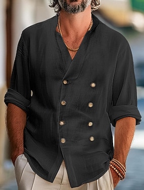 Herre Skjorte Linskjorte Strandskjorte Skjorte med knapper عادي Avslappet Feriereise Svart Hvit Navyblå Lysegrå Langermet Opprett krage Vår Høst Klær Knapper