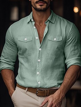 Herre Skjorte Linskjorte Sommerskjorte Strandskjorte Skjorte med knapper Skjorter uten stopp Helfarge utendørs Gate Svart Hvit Lysegrønn Rosa Langermet Aftæpning Sommer Vår & Vinter Klær Knapp ned