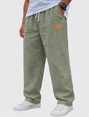 Herre Linbukser Bukser Sommerbukser Snorer Elastisk midje Rett ben عادي Komfort Pustende Full lengde Avslappet Daglig Ferie Ferie Mote Svart Hvit