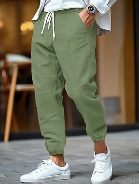 Herre Linbukser Bukser Sommerbukser Posete bukser Lomme Elastisk midje Snorer عادي Komfort Pustende Full lengde Avslappet Daglig Ferie Ferie Mote Løstsittende Svart Grønn Uelastisk