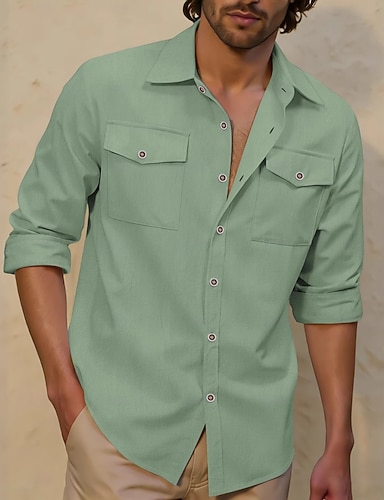 Herre Skjorte Skjorte i bomullslin Sommerskjorte Uformell skjorte Skjorte med knapper عادي Avslappet Daglig Hvit Grønn Kakifarget Lyseblå Langermet Krage Vår sommer Klær Lomme