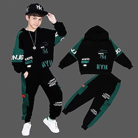 Gutt 3D Grafisk Kamuflasje Farge Bokstaver Hettegenser og joggebuksesett Hettegensersett Tøysett Langermet 3D-utskrift Sommer Høst Aktiv Mote Kul Barn 3-12 år utendørs Feriereise Gate Normal
