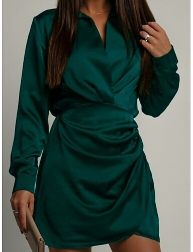Dame Mini kjole Uformell kjole Elegant Mote Moderne utendørs Feriereise Ut på byen Normal عادي Langermet Skjortekrage Svart Rød Brun Grønn Sommer Vår