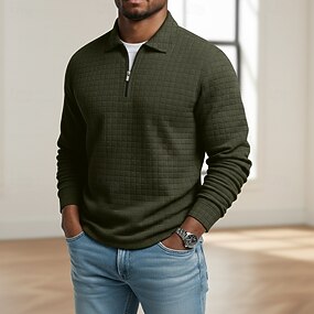 Herre Vaffel poloskjorter Med Tekstur Avslappet utendørs Glidelås Quarter Zip Langermet Mote Moderne Helfarge Med Tekstur Ta igjen glidelåsen Vår & Vinter Alle årstider Normal Svart Hvit Vin Navybl