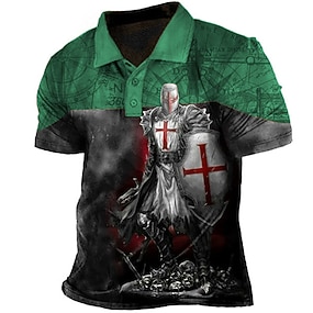 Herre Tempelridderne Poloskjorter Golf skjorte Kortermet Poloskjorter Skjorter med krage Årgang Fritid Ferieklær Festivalklær Festantrekk Knapper 3D-utskrift Svart Rød Navyblå