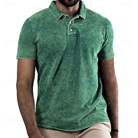 Herre Marmor Poloskjorter Kortermet Poloskjorter Skjorter med krage Fritid treningsklær Knapper Sommer Vår Blå Grønn Grå