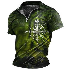 Herre Stamme Poloskjorter med glidelås Golf skjorte Kortermet Poloskjorter Skjorter med krage Årgang Fritid Ferieklær Festantrekk 3D-utskrift Kvart zip-polo Blå Gul Lysegrønn