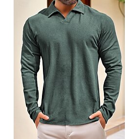 Herre Poloskjorter Golf skjorte Avslappet Gate Knaphul Langermet Grunnleggende Moderne عادي Klassisk Vår Høst Normal Blå Svart Hvit Grønn Kakifarget Poloskjorter