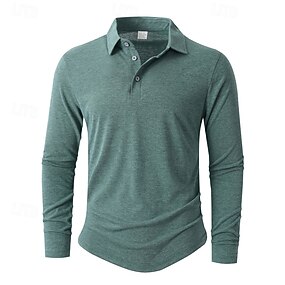 Herre Golf skjorte Golf poloskjorter Arbeid Avslappet Knaphul Langermet Grunnleggende Moderne عادي Knapper Vår Høst Normal Svart Hvit Navyblå Grønn Kakifarget Rose Golf skjorte