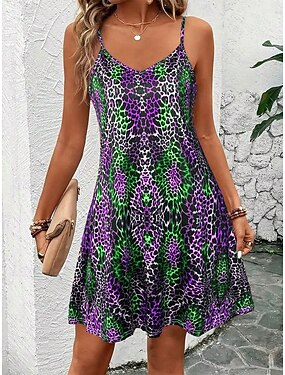 Dame Mini kjole Kjole med A-linje Slipkjole Off The Shoulder-kjole Ferie Fritid Feriereise Daglig Normal Grafisk Leopard Ermeløs V-hals Blå Kongeblå Lilla Grønn Sommer