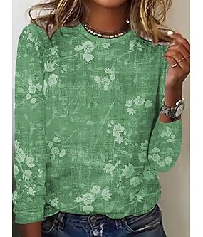 Påske Kvinnes T-skjorte Langermet Crew Hals Langermet Tunika Blomster Grafisk Planter Vintage Stilren Klassisk Rund Hals Vanlige Topper Daglig Trykk Svart Hvit Rosa Lilla Grønn Høst Forhøst
