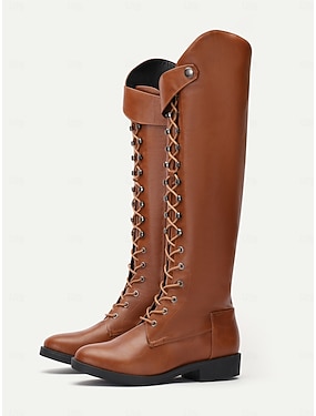 brune knehøye snørestøvler for kvinner – ridestøvler i vintagestil i kunstskinn for høst og vinter